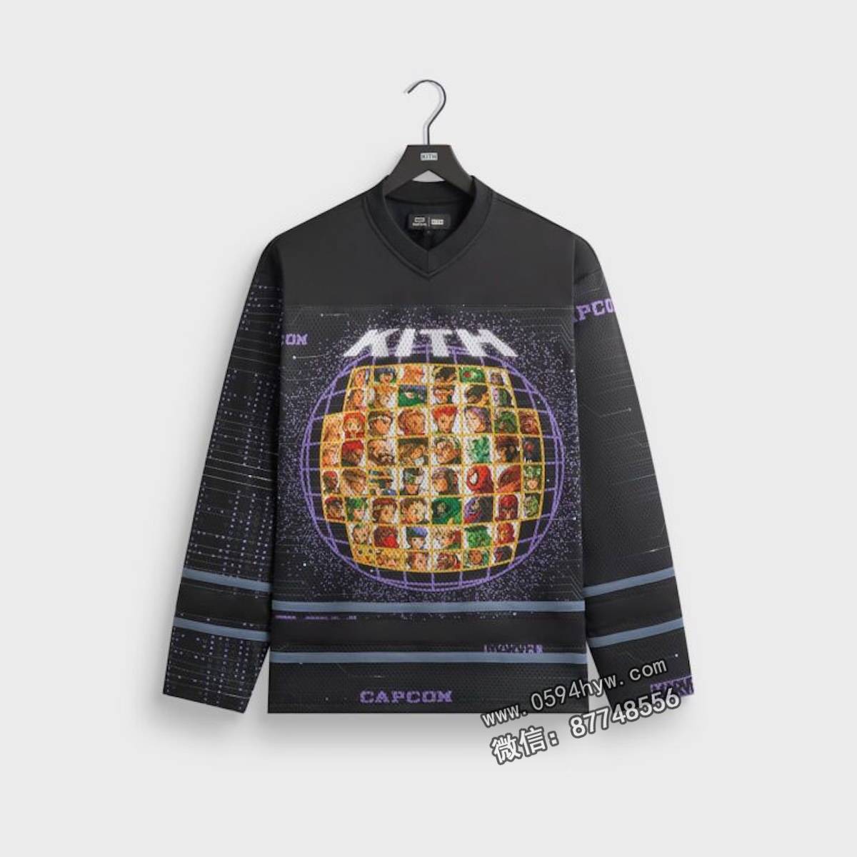 突出的产品包括贴满角色肖像的毛茸茸夹克、印满格斗片段的全印花连帽衫,以及仿照角色选择屏幕设计的曲棍球球衣。多款 T 恤与即将推出的 ASICS 运动鞋合作款相匹配,并采用了类似的以格斗为中心的设计。