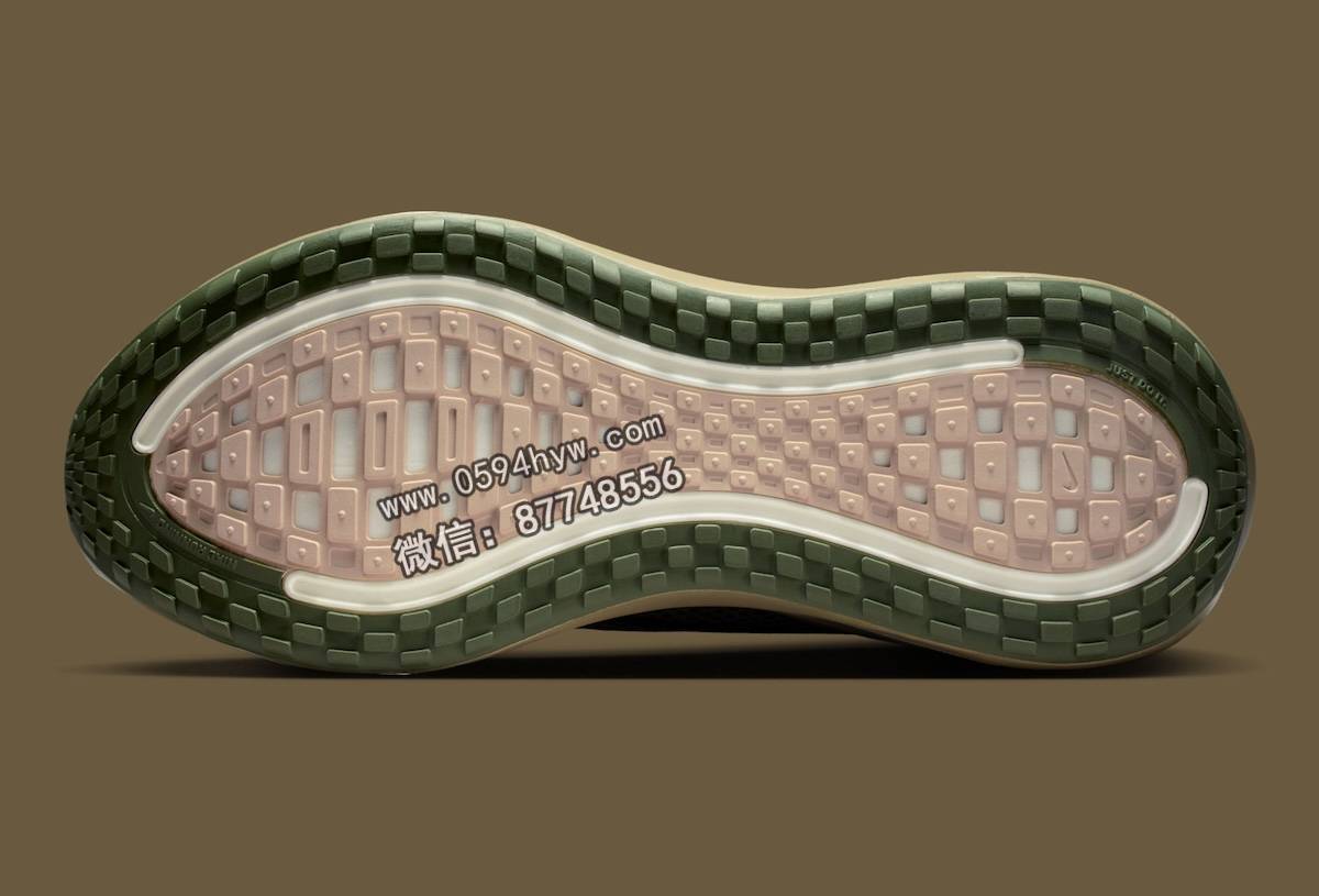 起伏的图案延伸至轮廓中底,毛绒绒的中性色延续了耐克最新的缓震设计。鞋头和鞋跟的反光细节在夜间提供了安全保障,橄榄色橡胶外底为这一系列大地色调的鞋款画上了句号,同时提供了纹理牵引补丁。