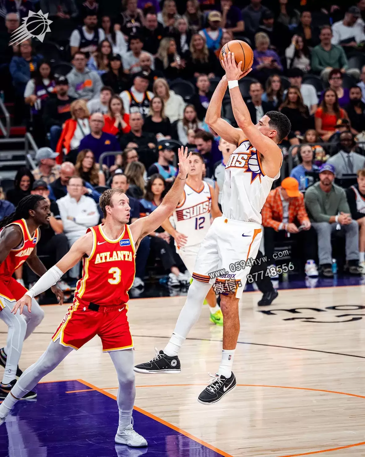 不过,这可能是最大胆的一次跨界。在 NBA 赛场上看到以匡威为灵感的耐克高性能鞋款确实非常罕见。布克过去曾展示过类似的定制鞋款,包括 2018 年的 Chuck Taylor 鞋款,上面缝制了 Swoosh,早在几年前就预告了这一想法。